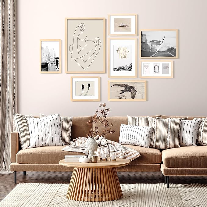 - EXQUISITE DESIGN:These natural 5x7 picture frames exhibit natural wood color and curved Bevel. Their smooth wood grain lines can almost complement any decorative styles. Whether it's modern, minimalist or idyllic, these Natural Wood Picture Frames will add a touch of natural beauty to your home.