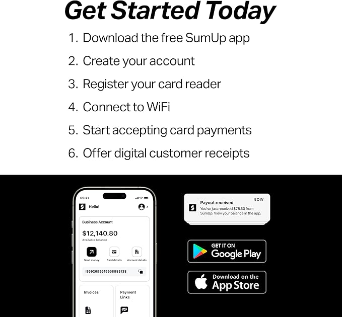 SumUp Plus Card Reader, Bluetooth - NFC RFID Credit Card Reader for Smartphone