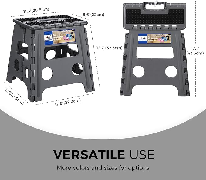 - Space Saving & Easy to Carry: ACKO collapsible step stool is only 1.5 inches thick when folded, it could save your closet space more than 90%. It's quickly and easily folds away for convenient storage so you could opens with one flip of the hand. Also you could hides them in corner at home because it's so compact