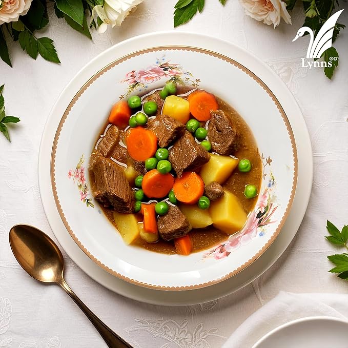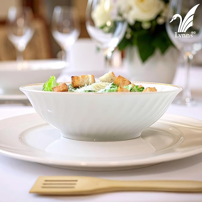 - 24k Gold Trim adorns each piece