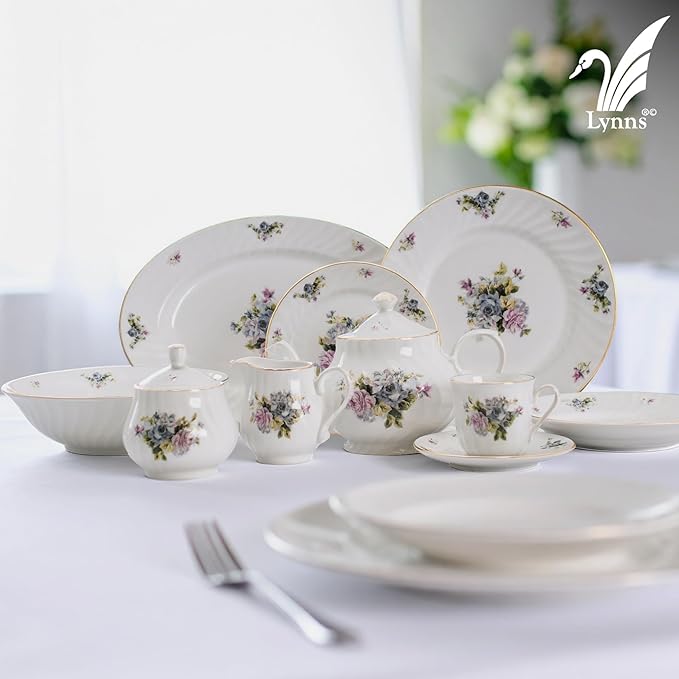 - 24k Gold Trim adorns each piece