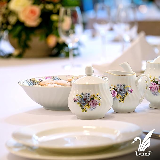 - 24k Gold Trim adorns each piece