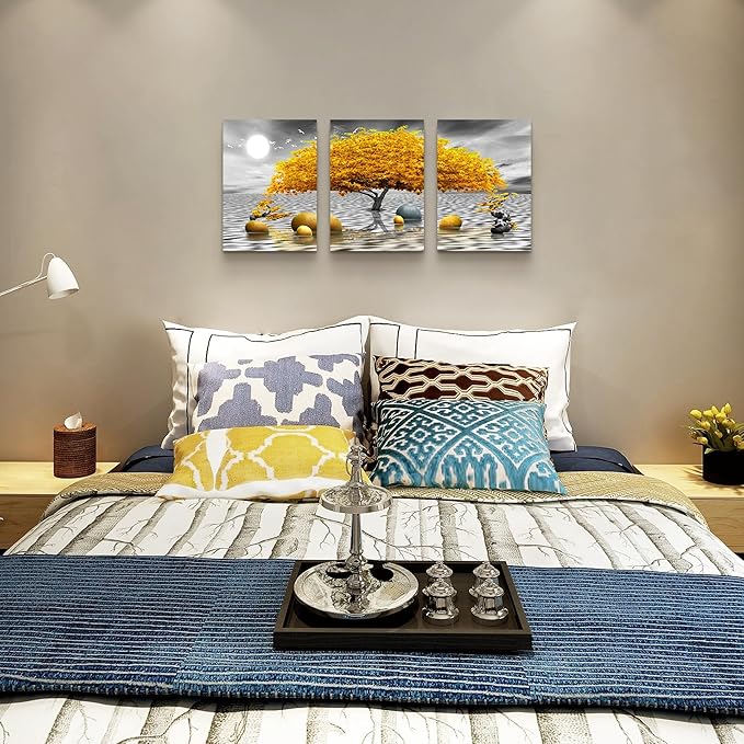 Wall decorations for living room Canvas Wall Art for bedroom Abstract wall decor Black and white Canvas Art Yellow tree paintings bathroom Home Decoration 3 Piece Hang Pictures Office Wall Artworks
