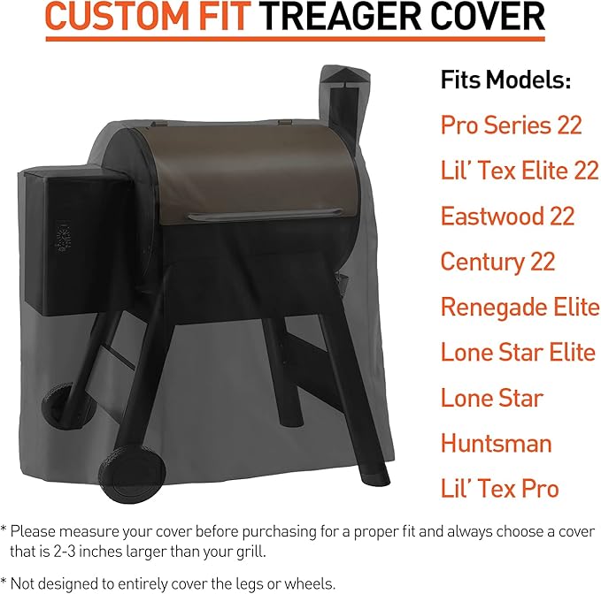 - Arcedo Smoker Cover - This grill cover for outdoor grill measures 41" W x 22" D x 39" H. The pellet grill cover is fit for several Brands of wood pellet grills, such as compatible with Traeger Pro 22 / 575 series, Lil' Tex elite 22, Eastwood 22, Century 22, Renegade elite, Lone star elite, Lone star, Huntsman and etc. Please measure your grill and always choose a cover that is 1-2 inches larger than your grill for a proper fit.