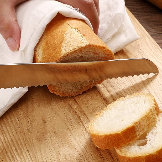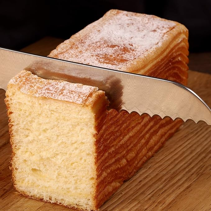 8" Serrated Bread Knife, Made of 67 Layers Damascus w/Octago Indonesian Ebony Handle Professional Cuts Thick Loaves Effortlessly have Razor Sharp and Superb Edge Retention