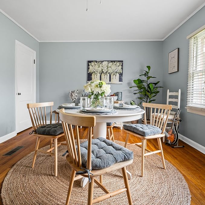 Barnett Home Decor Chenille Rib Slate Grey Dining Chair Cushions with Ties - 16.5 x 18 Size Medium Chair Pad - Latex Foam Fill, Reversible - Made in USA (Gray)