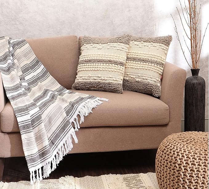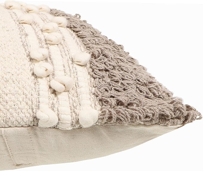 - Handloom Tufted Accents: Our pillow covers feature handloom dhurrie tufted accents in the front adding texture and dimension to their boho design, the back is made of plain cotton canvas fabric. The woven intricate details create a truly unique and artistic piece for your home.