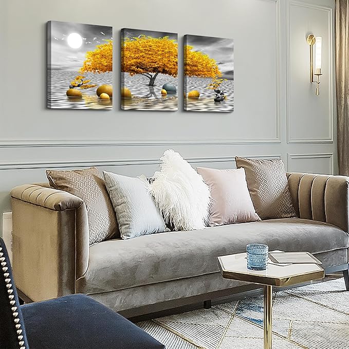 Wall decorations for living room Canvas Wall Art for bedroom Abstract wall decor Black and white Canvas Art Yellow tree paintings bathroom Home Decoration 3 Piece Hang Pictures Office Wall Artworks