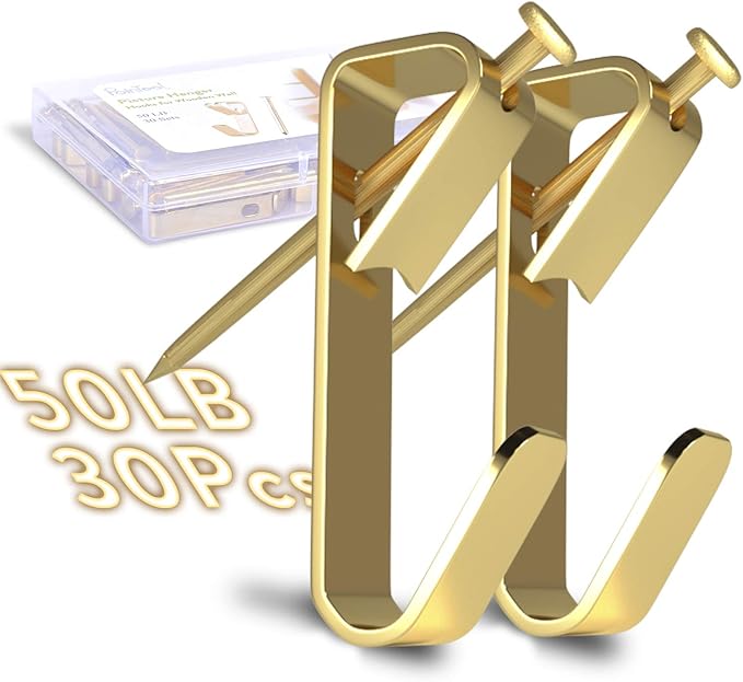 Picture Hangers, Picture Hooks for Hanging Pictures 50LB Frame Hooks Picture Hangers Heavy Duty Hardware Hanger Kit 30Pcs Wooden Wall Painting Hangers Hooks and Nails for Pictures