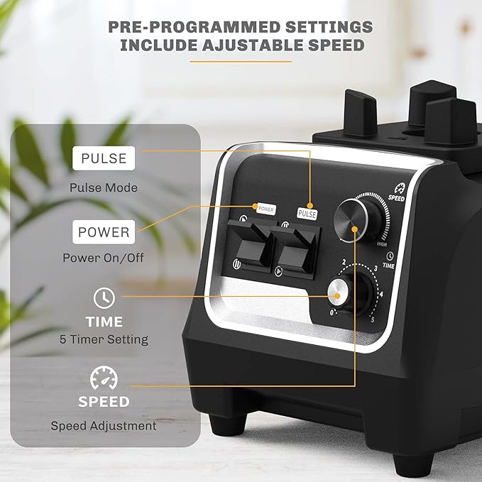 - 【2L Big Capacity & Worry-Free Purchase】This food blender with 5 timer settings can help achieve best mixing results upon food assortment. It has a 2L large capacity which is perfect for family meals, entertaining and commercial. We provide 1095 days warranty and should there be any questions, we are here to assist you with the best solution.