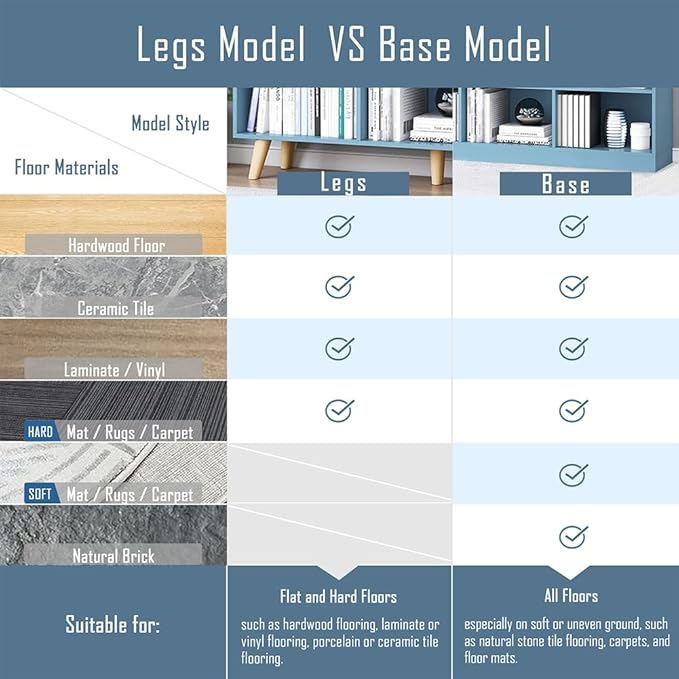 IOTXY Wooden Open Shelf Bookcase - 3-Tier Floor Standing Display Cabinet Rack with Legs, 10 Cubes Bookshelf, Bright Blue