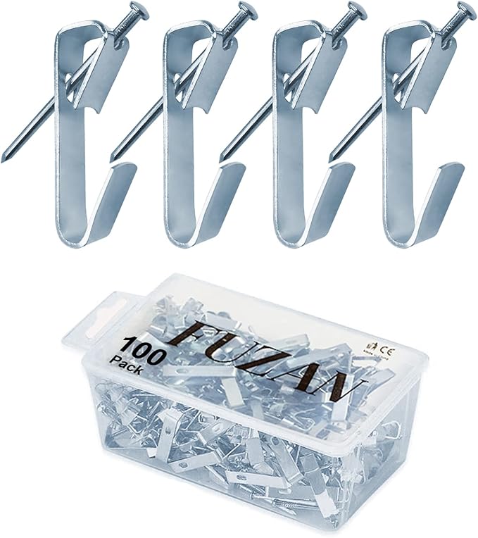 100pcs Picture Hangers,30lbs Picture Hanging Hooks with Nails, FUZANWJ Professional Picture Hanging Kit on Wood/Drywall (30lbs-100pcs)