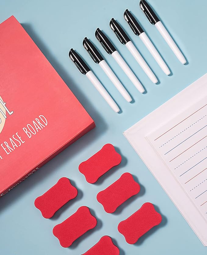 - Double-Sided Magnetic Write and Wipe Board Set: This set includes 6 double-sided dry erase boards, 6 markers, and 6 erasers. The magnetic surface on both sides is ideal for use with magnetic letters, numbers, or any other magnets, making it a versatile teaching tool for classrooms, distance learning, and math activities