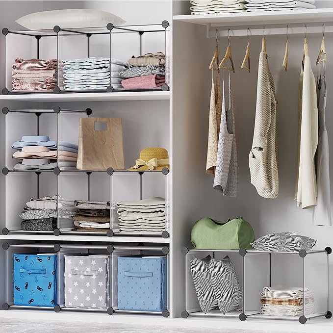 HOMIDEC Closet Organizers and Storage, 9 Cube Storage Organizer, Portable Closet Organizer Storage Cubes Shelves for Clothes, Bedroom, Wardrobe, Kids Room, Bathroom, Transparent