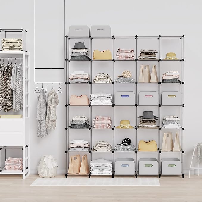 - Closet Organizer with Super stability: Whether every cube closet organizer sheet get well locked decides if you can get a strong structure. Our connector is made of ABS resin, inside is multilayer lock design so it wonβt easily slides out. So we suggest you lock the sheet in deepest layer to get highest stability for the closet organizer.
