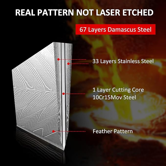 - Ultra Sharp Blade Damascus Utility Knife: Superior Damascus steel makes this kitchen knife better, give it razor-sharp blade, keeps the blade sharp for a longer time.