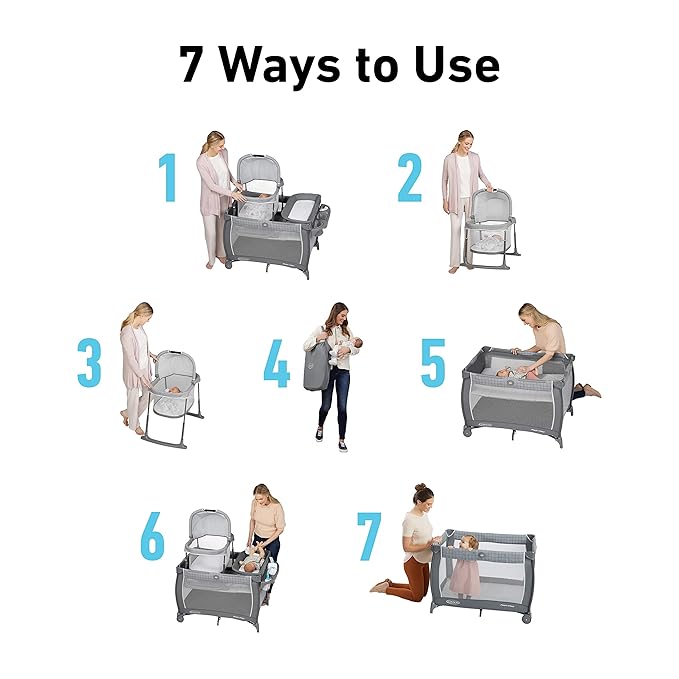 Graco Pack 'n Play Day2Dream Travel Bassinet Playard Features Portable Bassinet Diaper Changer and More (Lo, Lo, W/Fold Flat Bassinet)