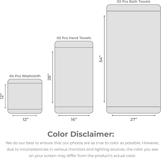 - UPGRADE YOUR BATHROOM: This set includes 2 bath towels, 2 hand towels, and 4 washcloths, offering everything you need for a well-equipped bathroom. Designed with care, each piece adds practicality and sophistication, making it a perfect addition to your