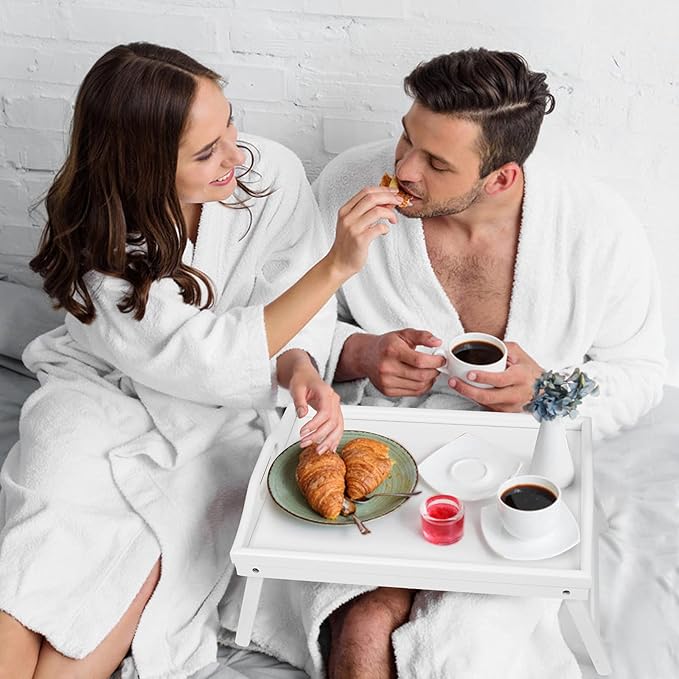Bed Tray Table Folding Legs with Handles Breakfast Food Tray for Sofa,Bed,Eating,Drawing,Platters Serving Lap Desk Snack Tray (White Medium)