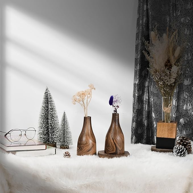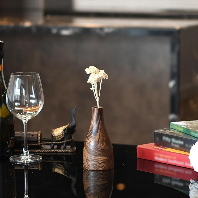 Aeravida Artistic Grain Pattern Natural Mango Tree Wood Flower Vase | Mango Tree Wood Flower Vase | Handmade Home Office Table Vase| Flower Vases Decorative for Living Room (1PCS)