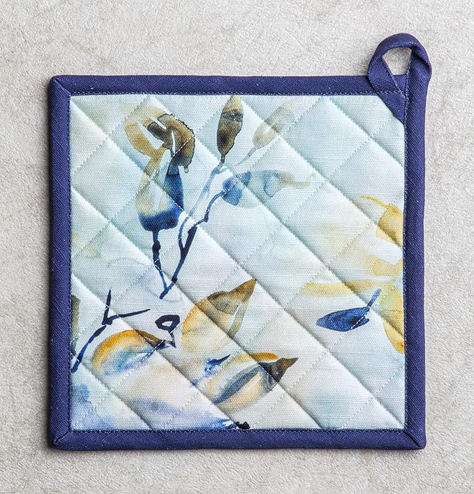 Maison d' Hermine Pot Holders 100% Cotton Heat Resistant Potholders 8" x 8" Hot Pads with Loop BBQ, Cooking, Baking, Grilling, Kitchen, Handling Hot Pans Spring/Summer (Pack of 1, Lazy Summer Days)