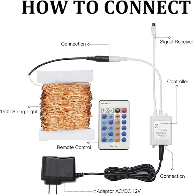 - Dimmable 164 Feet Fairy Lights - With a 24 key remote control in hand, so easy to TURN ON/OFF; ADJUST BRIGHTNESS; SWITCH MODES from flash to smooth to steady on. DIY the best mode for your own decoration.