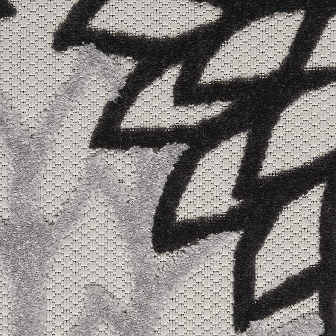 Nourison Aloha Indoor/Outdoor Black White 2'8" x 4' Area Rug, Tropical, Botanical, Easy Cleaning, Non Shedding, Bed Room, Living Room, Dining Room, Deck, Backyard, Patio (3x4)