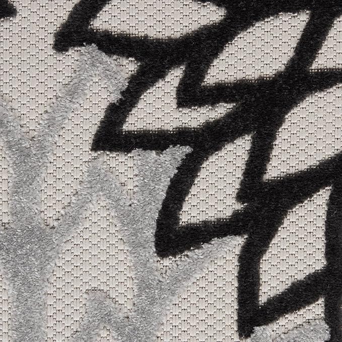 Nourison Aloha Indoor/Outdoor Black White 6' x 9' Area Rug, Tropical, Botanical, Easy Cleaning, Non Shedding, Bed Room, Living Room, Dining Room, Deck, Backyard, Patio (6x9)