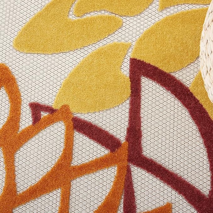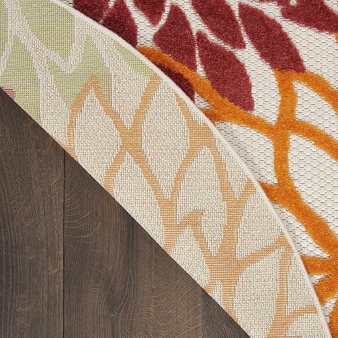 Nourison Home Aloha 94" Round Fabric Indoor/Outdoor Rug in Red Multi-Color