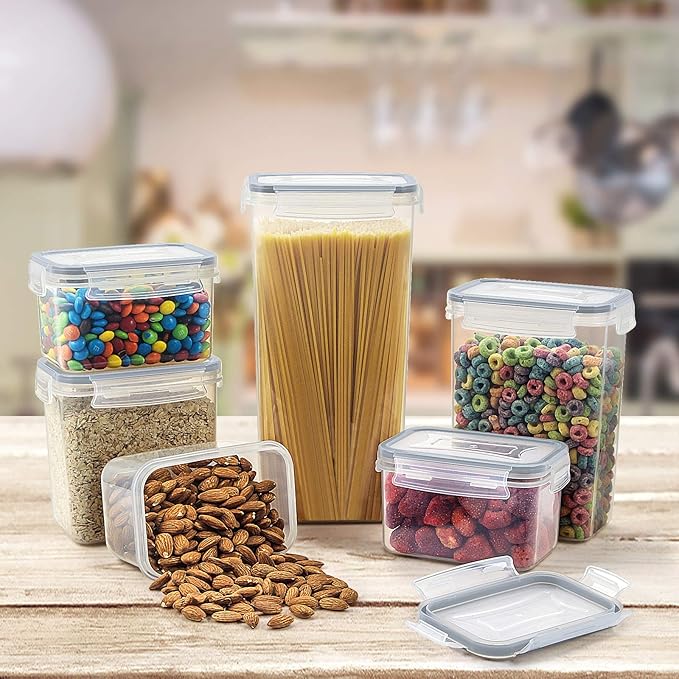 - Airtight Seal Lids Keep Food Fresh: Each pantry storage container features an airtight 4 sided-locking system resulting in an airtight seal, keeping your cereal super fresh, help you get prolonged food storage