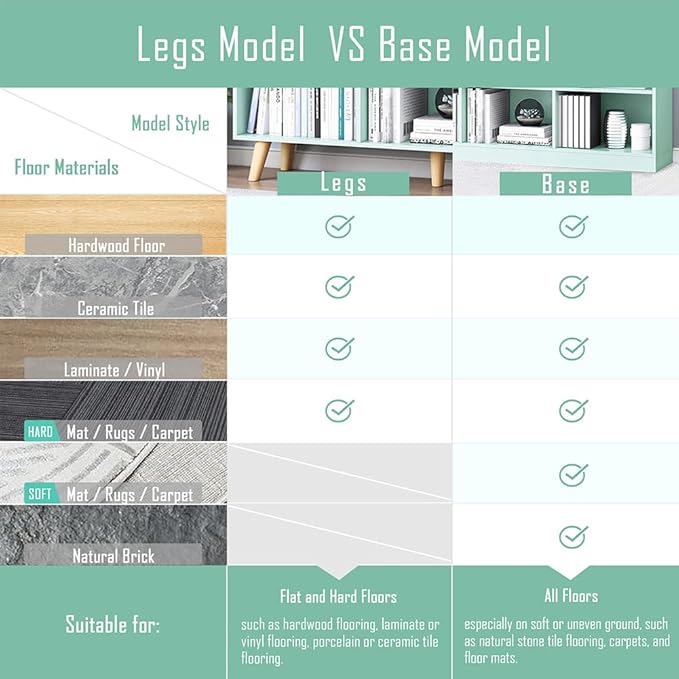 IOTXY Wooden Open Shelf Bookcase - 3-Tier Floor Standing Display Cabinet Rack with Legs, 10 Cubes Kids Bookshelf, Tiffany-Green