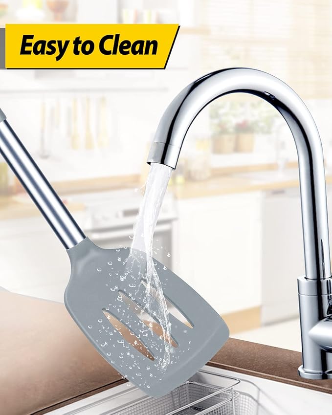 Pack of 2 Silicone Solid Turner, Non Stick Slotted Kitchen Spatulas, High Heat Resistant BPA Free Cooking Utensils, Ideal Cookware for Fish, Eggs, Pancakes(Gray)