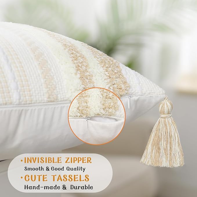 - Care Instruction: To prolong the life of the tassels and tufting, hand washing is recommended. Please turn the neutral pillow covers inside out and hand wash them
