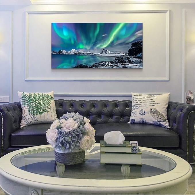 Farmhouse Wall Decor For Living Room Canvas Wall Art For Bedroom Blue Aurora Scenery Paintings Modern Bathroom Canvas Art Print Ready To Hang Office Pictures For Home Kitchen wall Decorations Artwork