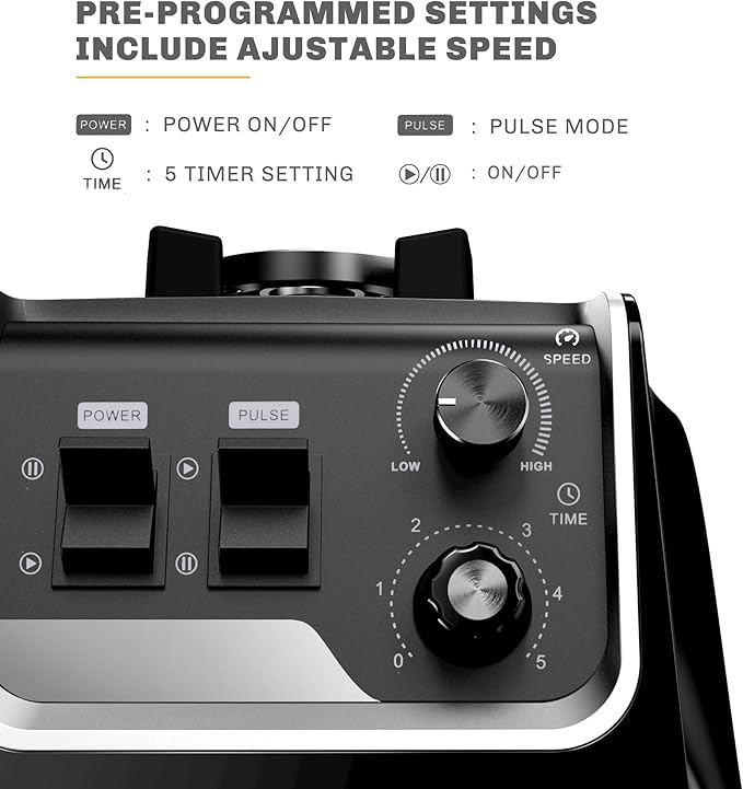 - 【Variable Speed & Pulse Control】Our smoothie blender designed with a versatile variable speed control by rotating the knob during operation to achieve your desired textures. Choose pulse mode to crush ice quickly for frozen drinks and cocktail.Great for making large batches of creamy, frozen drinks and smoothies for the entire family and commercial use.