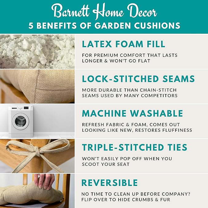 - LATEX FOAM FILL - Outdoor rocking chair cushions are filled with latex foam for premium comfort, lasts longer than other foams and won't go flat (unlike polyester fiber fill)