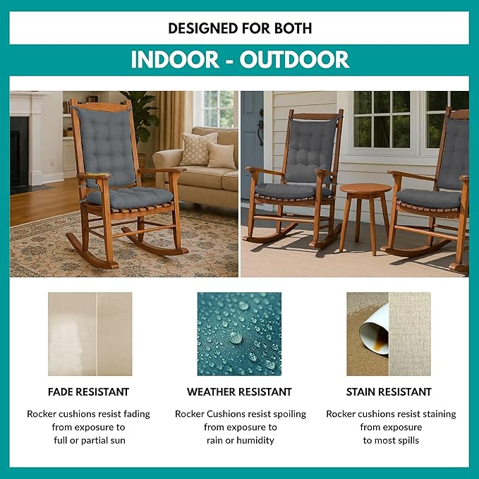 - INDOOR / OUTDOOR Porch rocker cushions are fade resistant up to 500 hours, weather resistant -won't spoil from exposure to rain or humidity