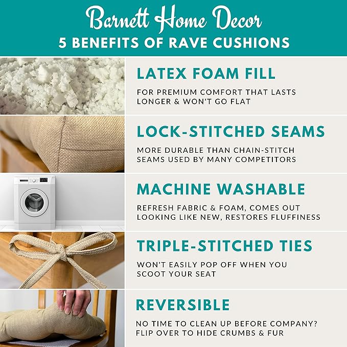 - LATEX FOAM FILL - Outdoor rocking chair cushions are filled with latex foam for premium comfort, lasts longer than other foams and won't go flat (unlike polyester fiber fill)