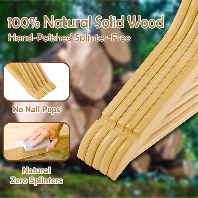 - SMOOTH POLISH SURFACE: Use eco-friendly glossy lacquering, snag-free to protect your valued garments. Double hand-sanding smooth wooden shirt hangers notches protect your delicate clothes from snagging.