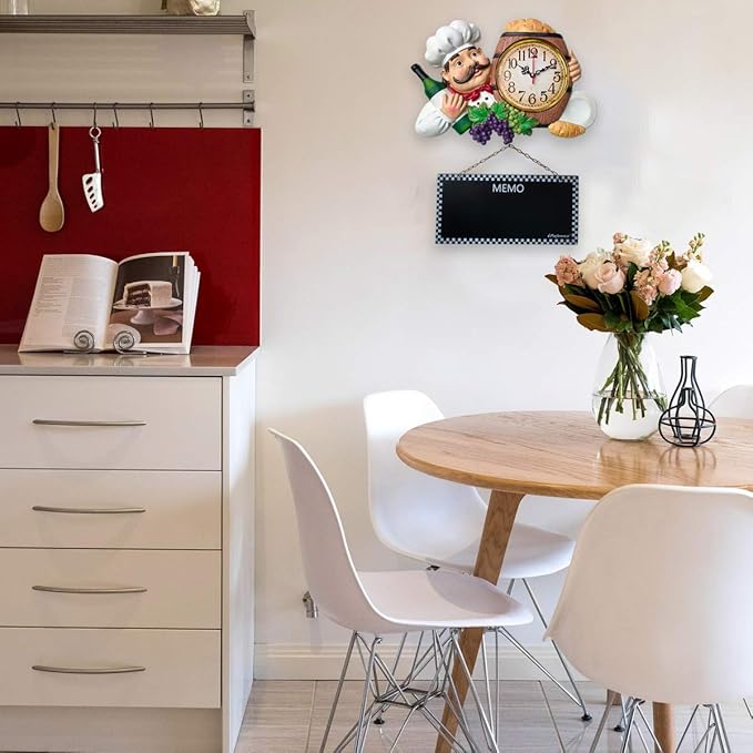 2 in 1 Wall Clock and Black Board with Chef Décor Display and Leave Your Message on The rewritable Black Board, Decoration/Home/Kitchen/Livingroom/Dining Room/Restaurant/Bar/Cafe