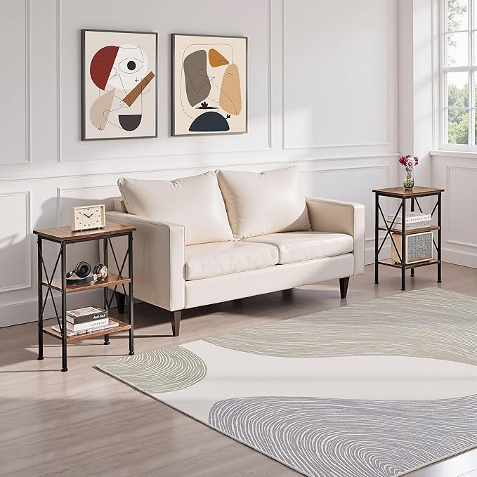 VECELO Versatile Side/End Table with Storage Shelf Nightstands for Living Room,Bedroom Furniture (Set of 2), Shelves, Retro Brown