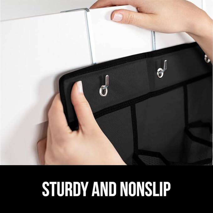 - SLIP RESISTANT DESIGN: organizer features four strong and sturdy hooks that firmly grip the top of doors and are designed to fit seamlessly over most doors