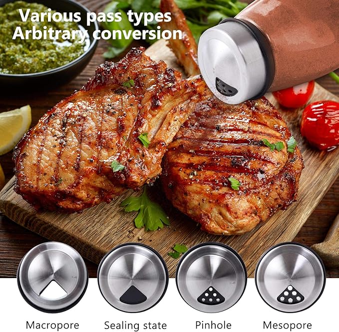 - Adjustable Outlet Size - The cap has three kinds of discharge ports and it can be rotated according to the particle size, and the 360°rotation can be switched at will. 3.2cm large bottle mouth, easy and convenient when filling the seasoning, will not spill easily, dustproof and moisture-proof, good airtightness, safety and sanitation.They are easy to clean and can be thrown on the dishwasher so you don’t have to scrub again.