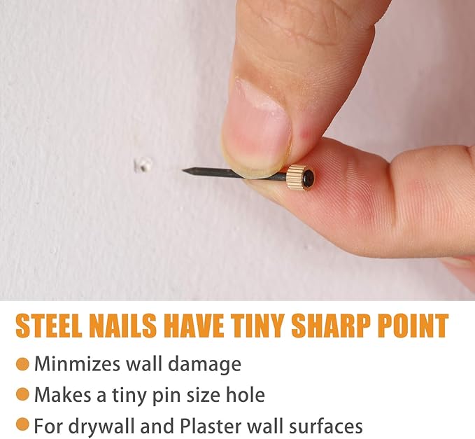 - Hardly leave trace: the pointed nails make the pictures hook leave only tiny pin holes in the wall, and you can hardly notice, which will reduce the damage to wall and not affect the overall beauty of the wall