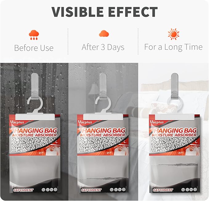 - EASY & SAFE: Vacplus moisture Dehumidifier packets provide an easy solution to protecting items and fabrics from excess moisture. By them up, physical dehumidification gives you a Safe, Green & Energy-saving life.