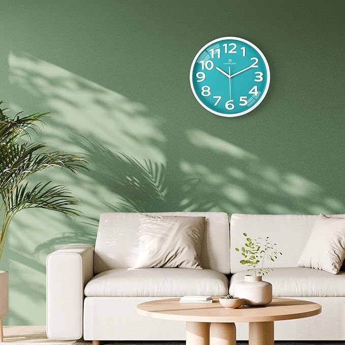 Lafocuse 12 Inch Silent 3D Numbers Teal Wall Clock for Living Room Decor, Battery Operated Teal Clocks for Girls Room Bedroom Office Kitchen