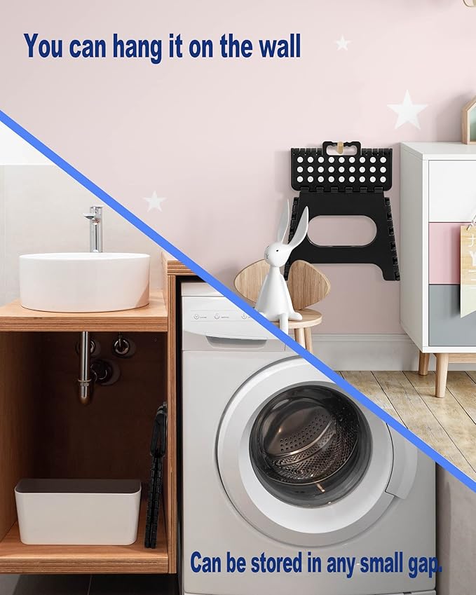 - 【PREMIUM QUALITY 】- The internal structural design is unique makes the step stool extra strong and safe. Our foldable step stool can hold up to 300 lbs Max !!! Please make sure the step stool is fully opened before use.