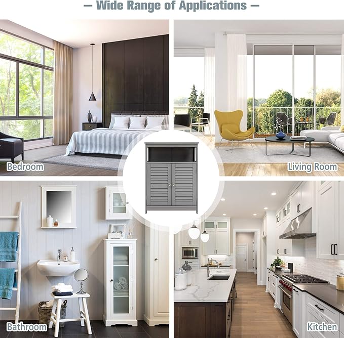 Tangkula Bathroom Floor Cabinet, Wooden Freestanding Storage Cabinet with Double Shutter Door & Adjustable Shelf, Storage Cabinet for Bathroom Living Room (Grey)