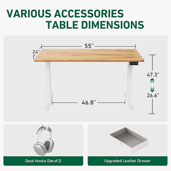 - Storage Drawer: 15.7 inches wide and 3.15 inches high storage space for daily work and life. The upgraded leather drawer with waterproof function and better texture, keep your desk clean and comfortable.