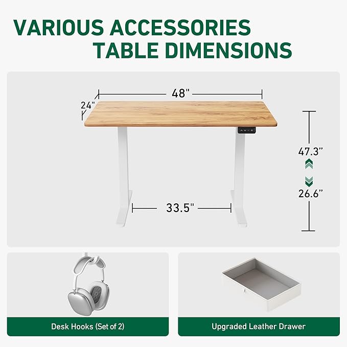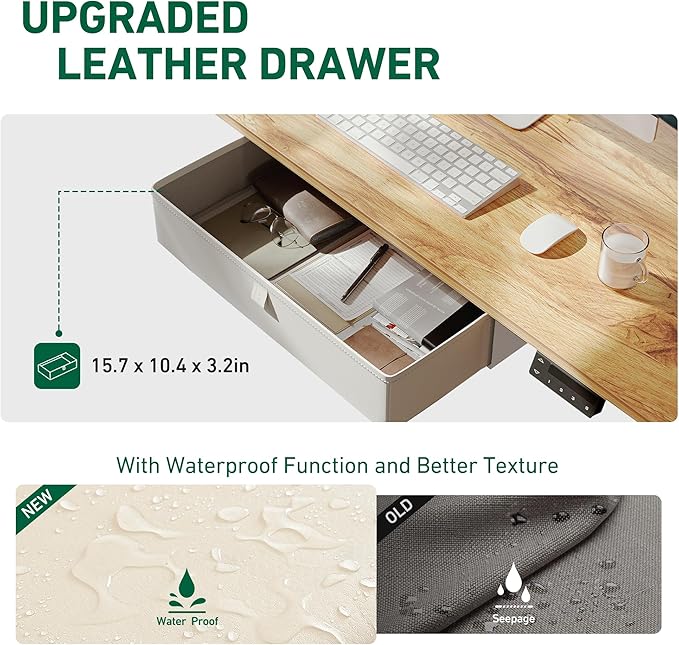 - Storage Drawer: 15.7 inches wide and 3.15 inches high storage space for daily work and life. The upgraded leather drawer with waterproof function and better texture, keep your desk clean and comfortable.